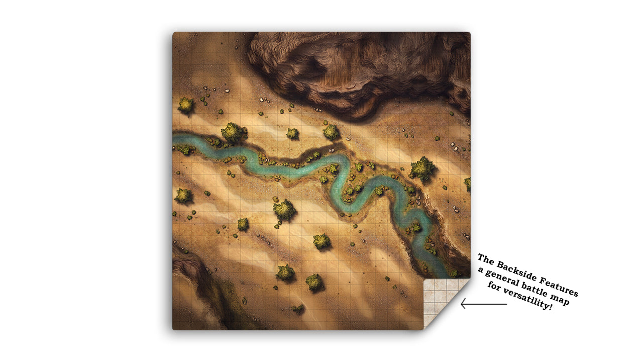 Desert Stream TTRPG Battle Map | Double-Sided | 2ft x 2ft
